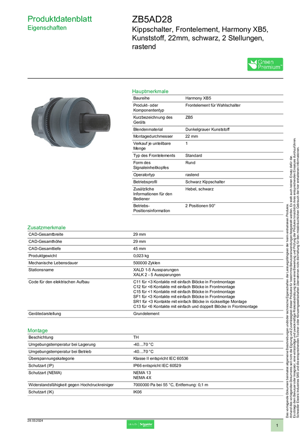 ZB5AD28 Schneider Electric ZB5AD28 Przełącznik wyboru, przedni element 1 szt.