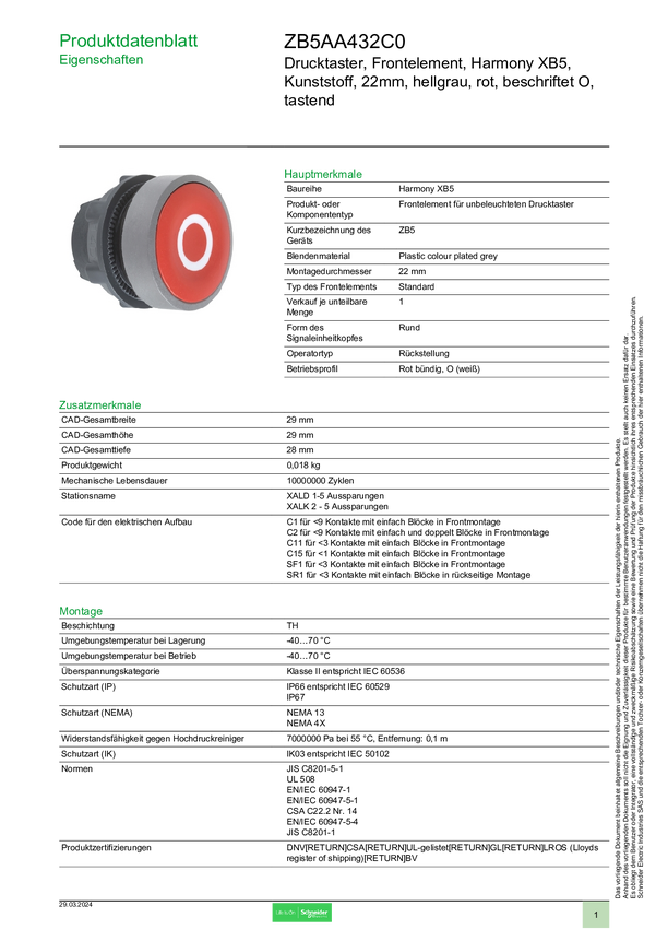 Schneider Electric ZB5AA432C0 Element przedni z przyciskiem 1 szt.