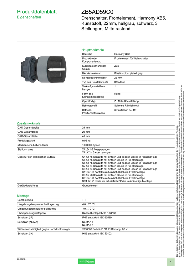 ZB5AD59C0 Schneider Electric ZB5AD59C0 Przełącznik wyboru, przedni element 1 szt.