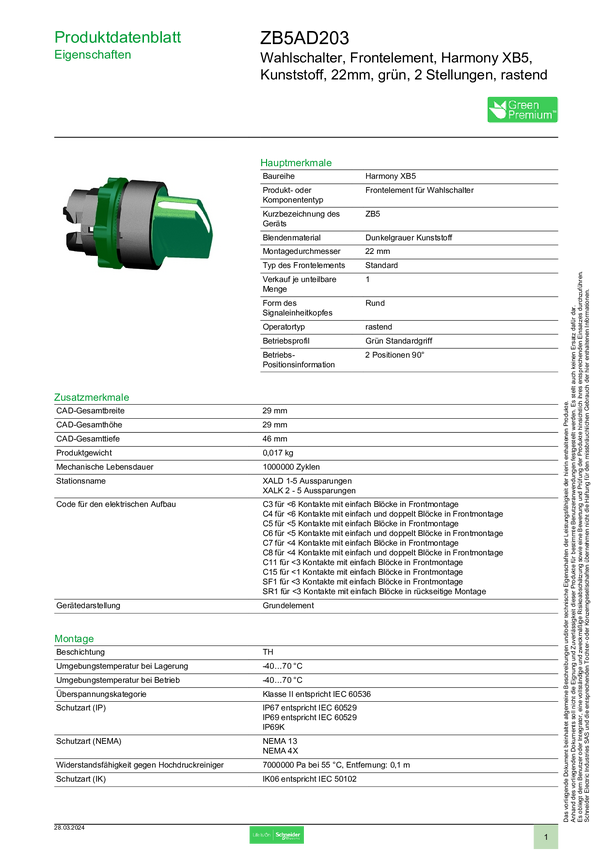 ZB5AD203 Schneider Electric ZB5AD203 Przełącznik wyboru, przedni element 1 szt.