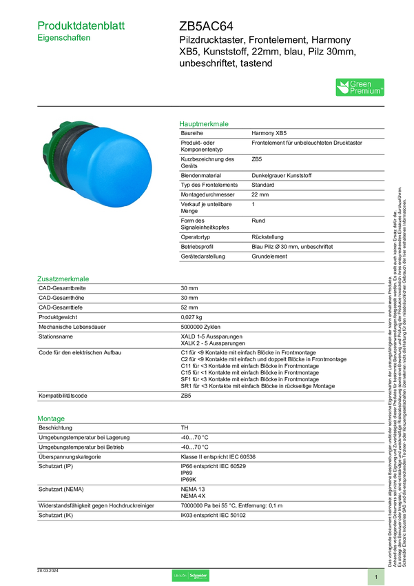 ZB5AC64 Schneider Electric ZB5AC64 Przycisk grzybkowy - przedni element 1 szt.