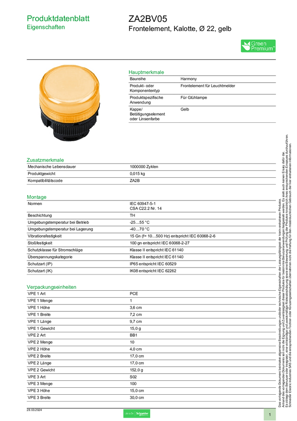 ZA2BV05 Schneider Electric ZA2BV05 Element przedni 1 szt.