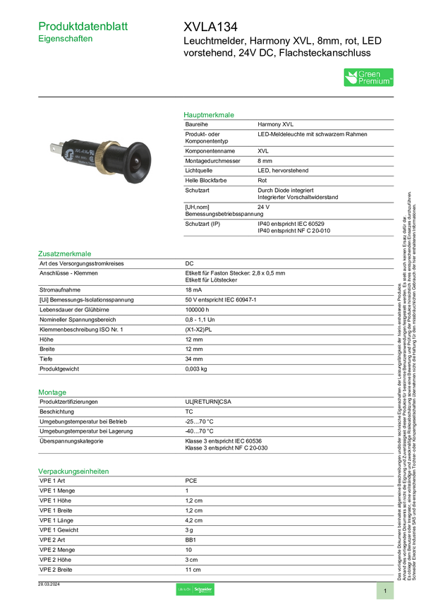 Schneider Electric XVLA134 Lampka sygnalizacyjna 1 szt.