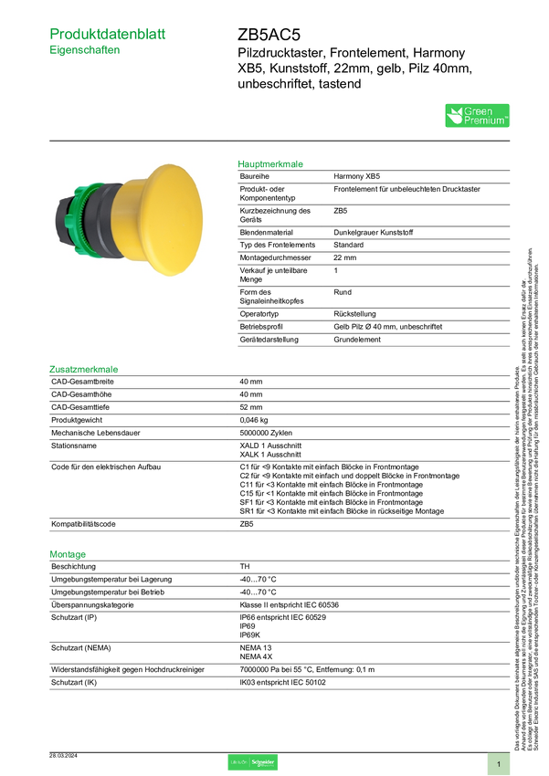 Schneider Electric ZB5AC5 Element przedni z przyciskiem 1 szt.