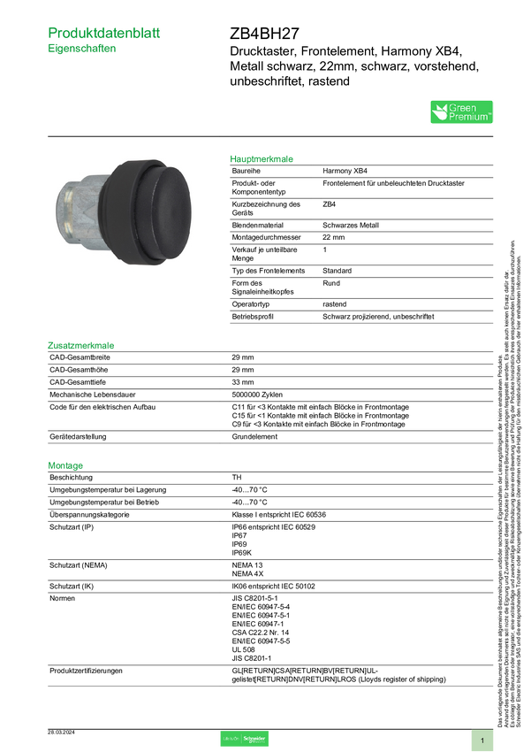 Schneider Electric ZB4BH27 Element przedni z przyciskiem 1 szt.