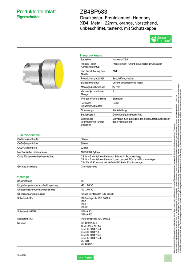 ZB4BP583 Schneider Electric ZB4BP583 Element przedni z przyciskiem 1 szt.