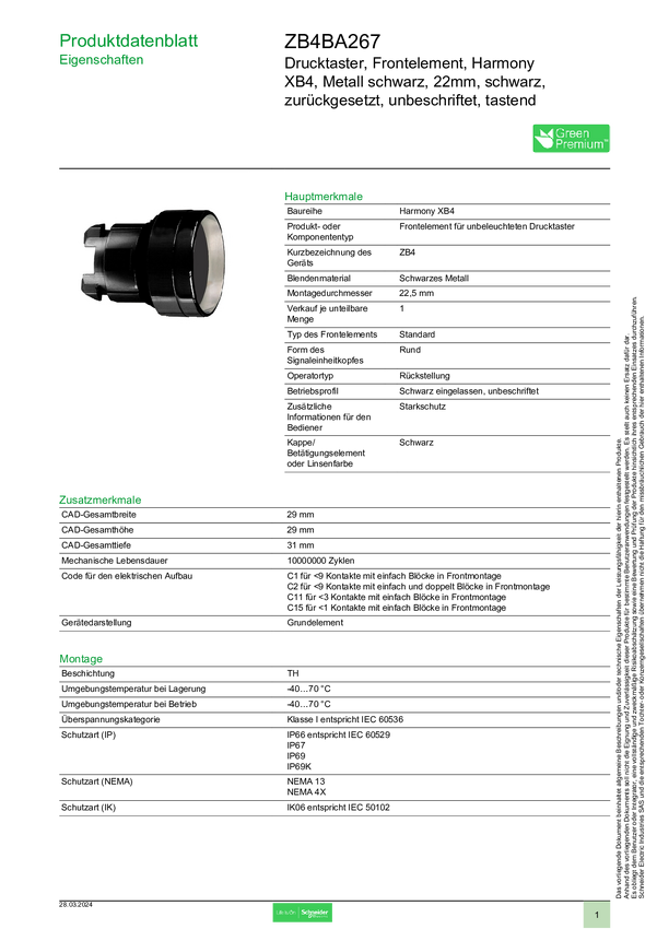 ZB4BA267 Schneider Electric ZB4BA267 Element przedni z przyciskiem 1 szt.