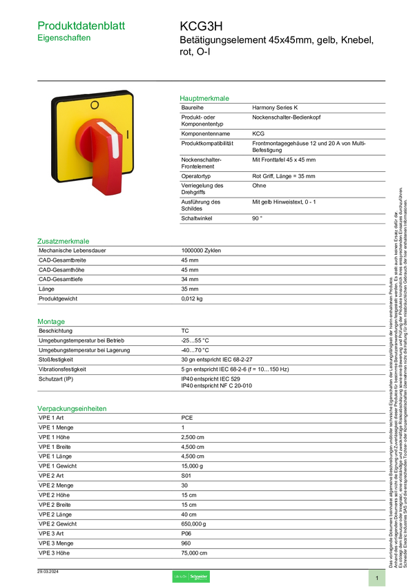 KCG3H Schneider Electric KCG3H Mocowanie wyłącznika awaryjnego 1 szt.