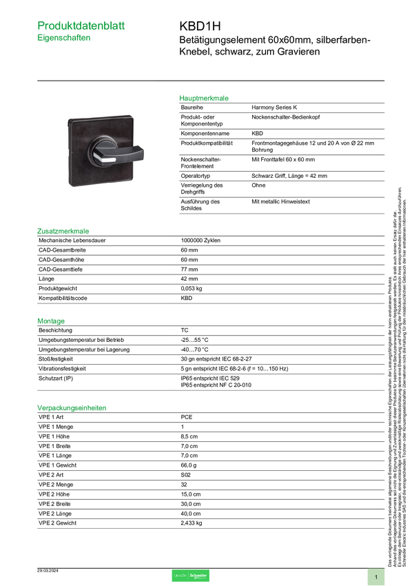 KBD1H Schneider Electric KBD1H Pokrętło wykonawcze 1 szt.