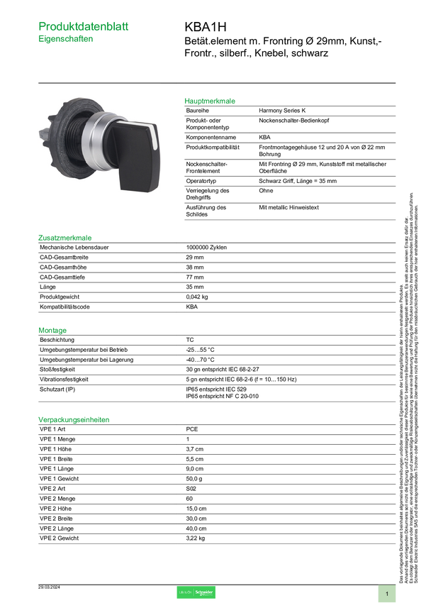 KBA1H Schneider Electric KBA1H Pokrętło wykonawcze 1 szt.