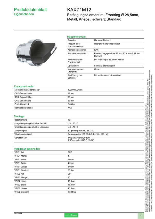KAXZ1M12 Schneider Electric KAXZ1M12 Pokrętło wykonawcze 1 szt.