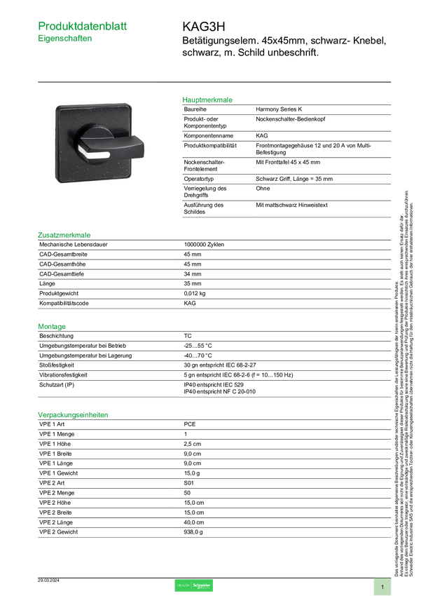 Schneider Electric KAG3H Pokrętło wykonawcze 1 szt.