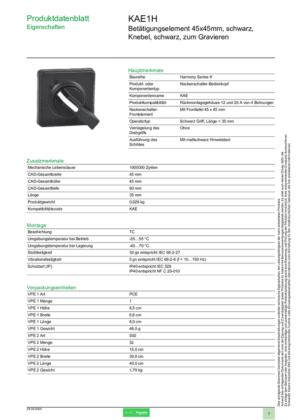 KAE1H Schneider Electric KAE1H Pokrętło wykonawcze 1 szt.
