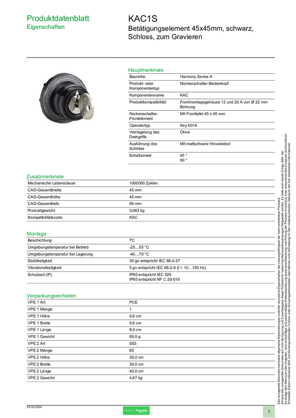 KAC1S Schneider Electric KAC1S Pokrętło wykonawcze 1 szt.