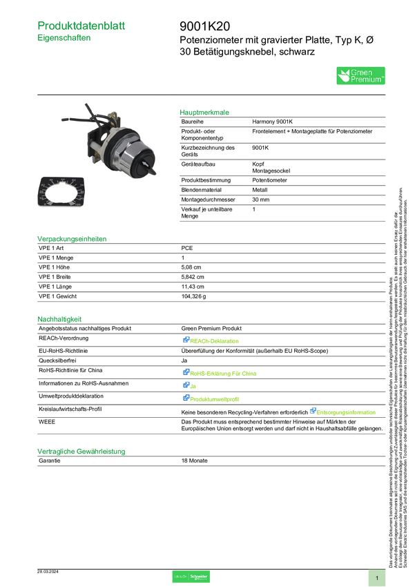 Schneider Electric 9001K20 Element przedni z przyciskiem 1 szt.