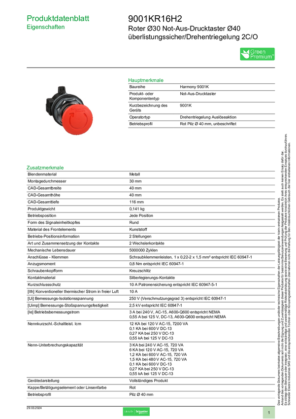 9001KR16H2 Schneider Electric 9001KR16H2 Przycisk grzybkowy, 1 szt.
