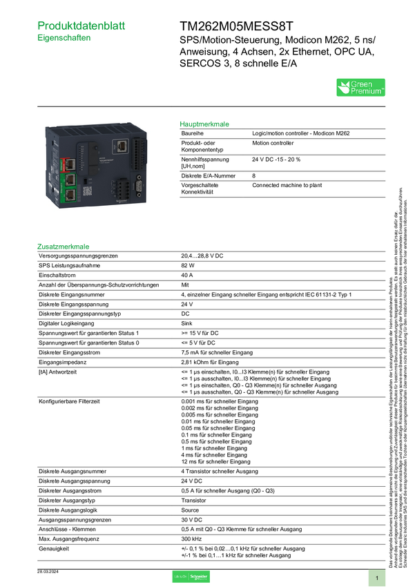 Moduł rozszerzeń Schneider Electric TM262M05MESS8T