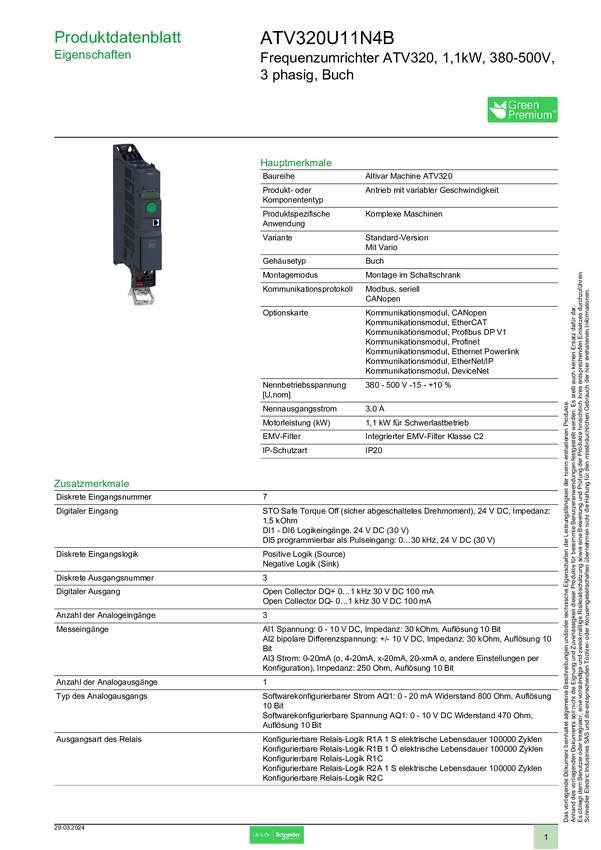ATV320U11N4B Przemiennik częstotliwości Schneider Electric ATV320U11N4B