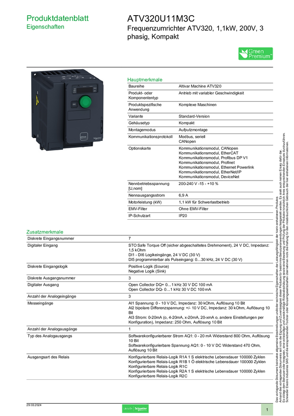 ATV320U11M3C Przemiennik częstotliwości Schneider Electric ATV320U11M3C