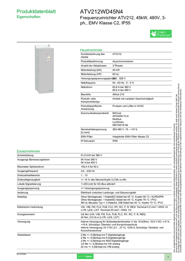 ATV212WD45N4 Przemiennik częstotliwości Schneider Electric ATV212WD45N4