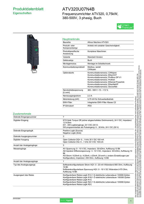 ATV320U07N4B Przemiennik częstotliwości Schneider Electric ATV320U07N4B