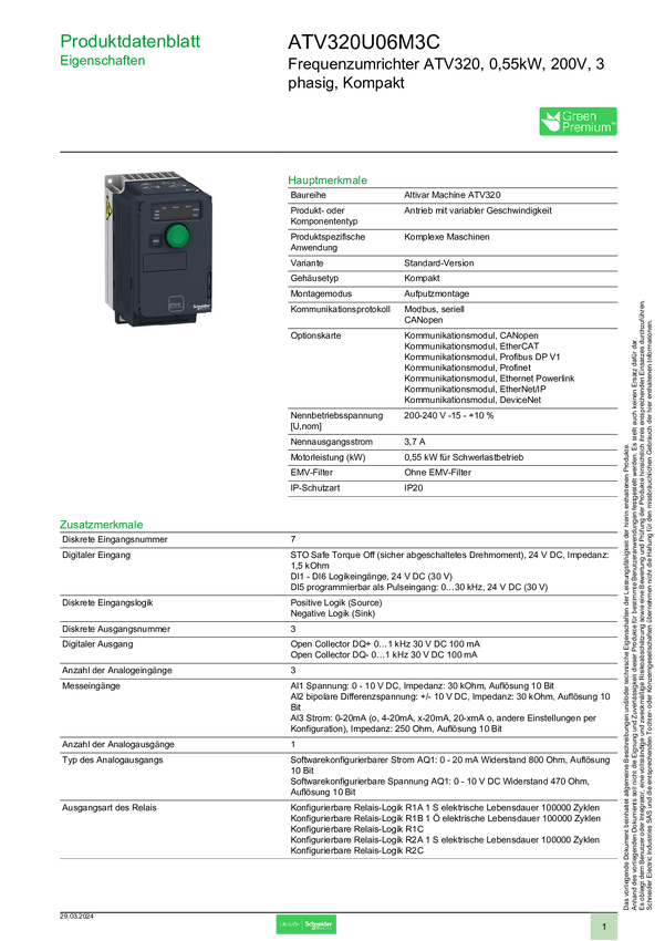 Przemiennik częstotliwości Schneider Electric ATV320U06M3C