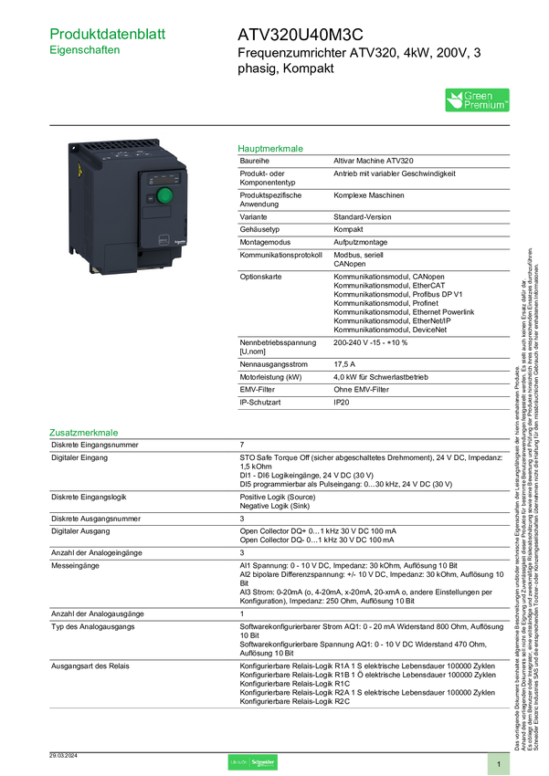 ATV320U40M3C Przemiennik częstotliwości Schneider Electric ATV320U40M3C