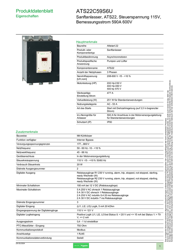 ATS22C59S6U Schneider Electric ATS22C59S6U ATS22C59S6U Soft-start