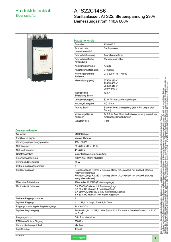 ATS22C14S6 Schneider Electric ATS22C14S6 Soft-start