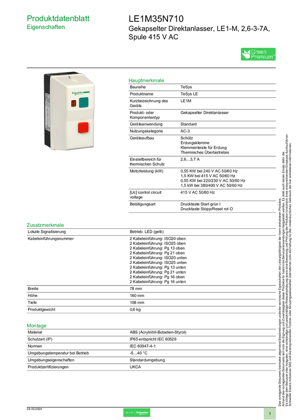 Schneider Electric LE1M35N710 LE1M35N710 Starter bezpośredni
