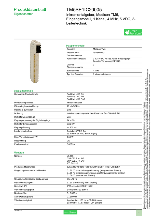 TM5SE1IC20005 Moduł rozszerzeń Schneider Electric TM5SE1IC20005