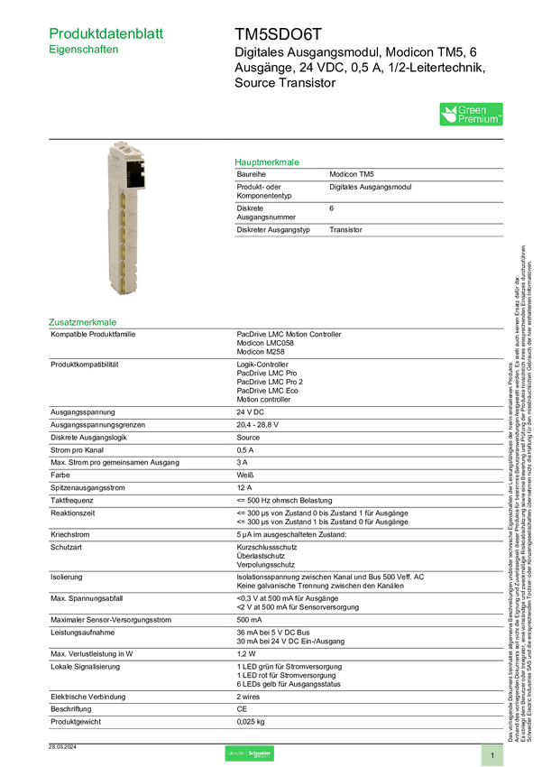 TM5SDO6T Moduł rozszerzeń Schneider Electric TM5SDO6T