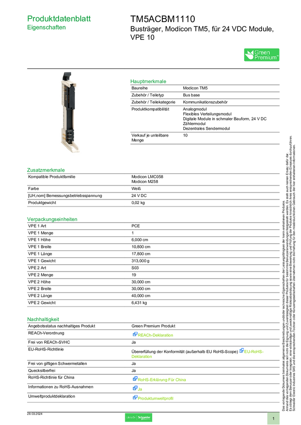 TM5ACBM1110 Moduł rozszerzeń Schneider Electric TM5ACBM1110