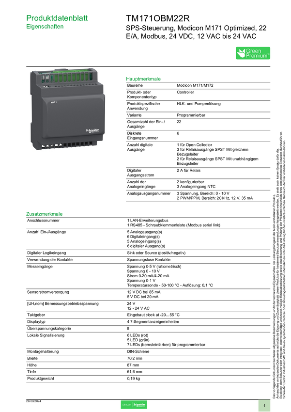 TM171OBM22R Moduł rozszerzeń Schneider Electric TM171OBM22R