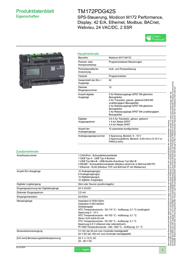 TM172PDG42S Moduł rozszerzeń Schneider Electric TM172PDG42S