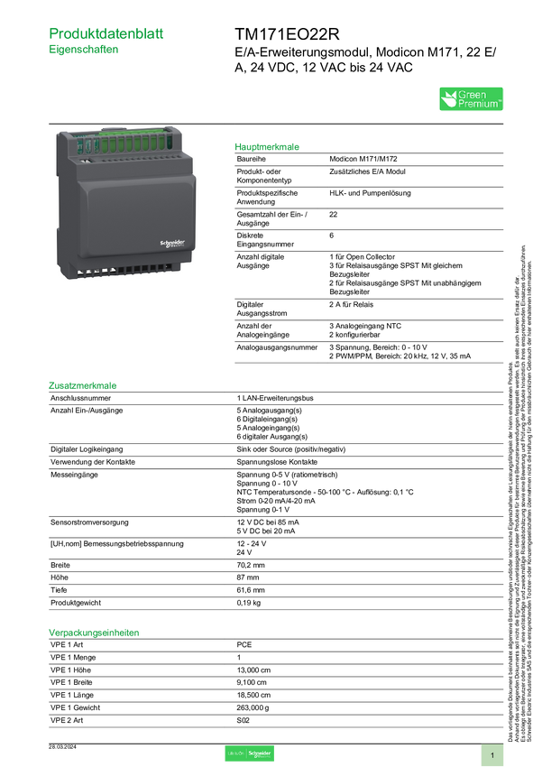 Moduł rozszerzeń Schneider Electric TM171EO22R