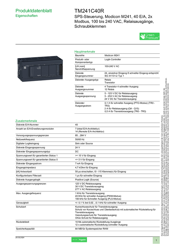 Moduł rozszerzeń Schneider Electric TM241C40R