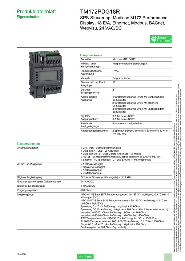 Moduł rozszerzeń Schneider Electric TM172PDG18R
