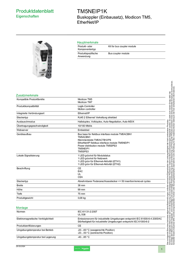 TM5NEIP1K Moduł rozszerzeń Schneider Electric TM5NEIP1K