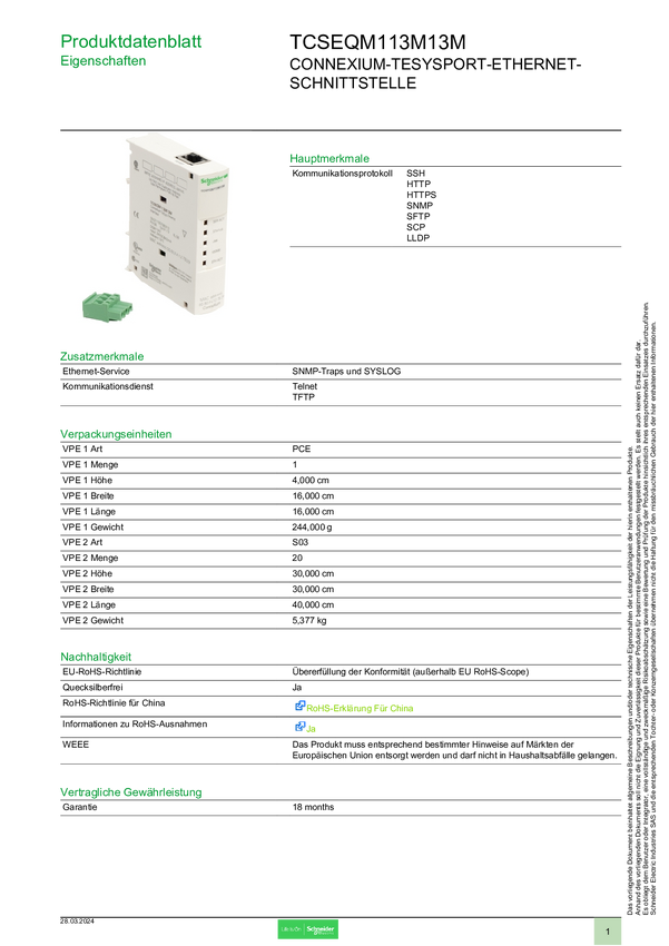 Moduł rozszerzeń Schneider Electric TCSEQM113M13M