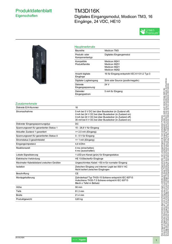 TM3DI16K Moduł rozszerzeń Schneider Electric TM3DI16K TM3DI16K