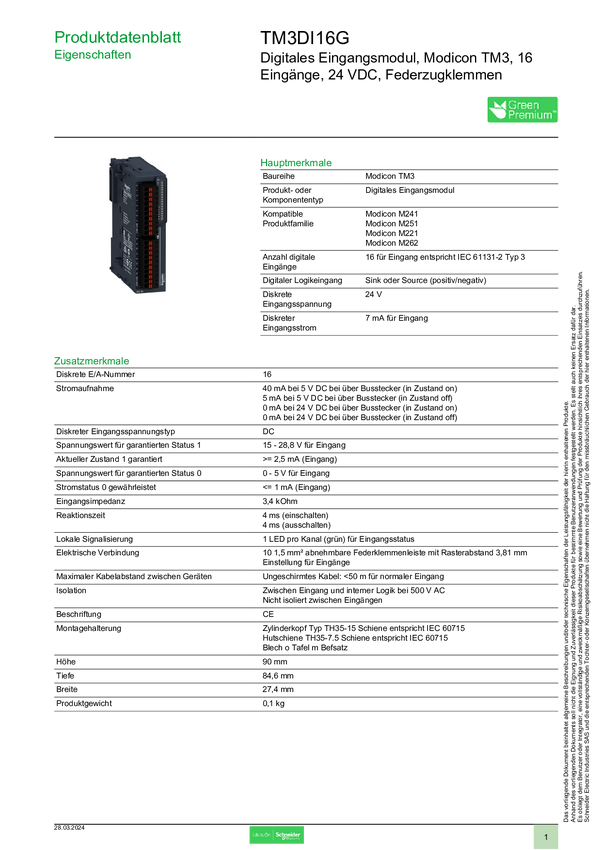 TM3DI16G Moduł rozszerzeń Schneider Electric TM3DI16G