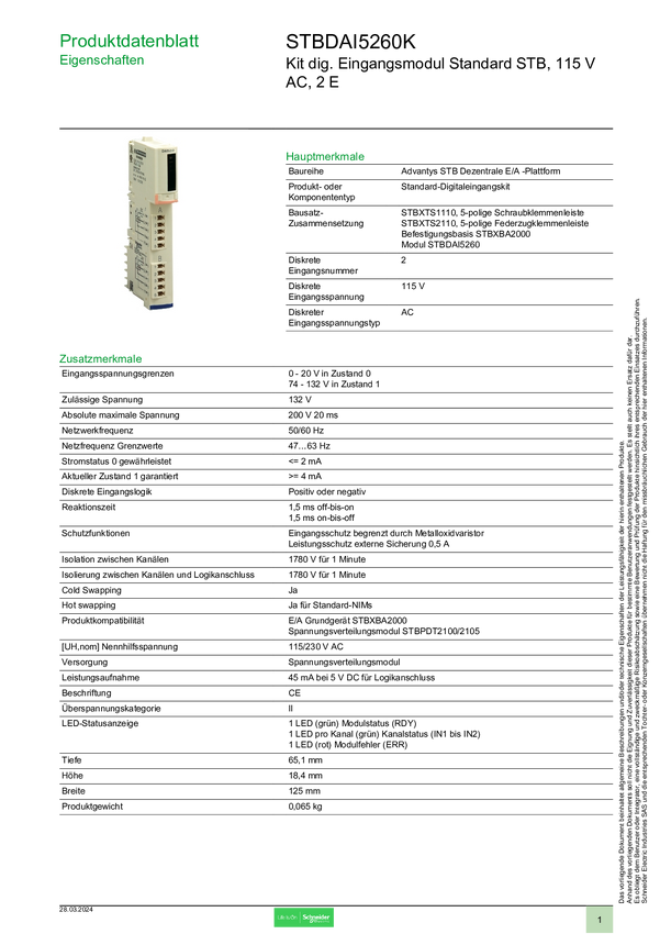 STBDAI5260K Moduł rozszerzeń Schneider Electric STBDAI5260K