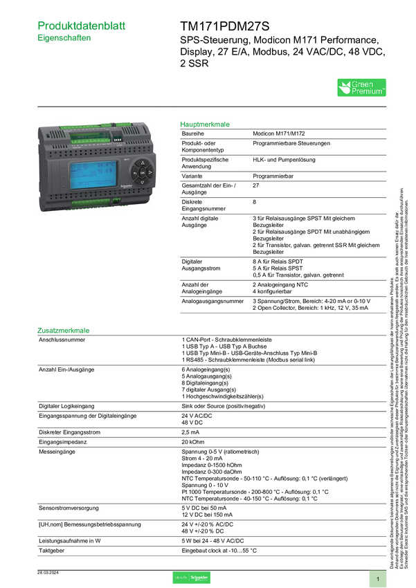 TM171PDM27S Moduł rozszerzeń Schneider Electric TM171PDM27S