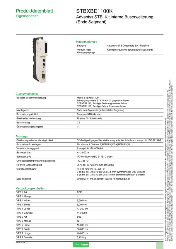 STBXBE1100K Moduł rozszerzeń Schneider Electric STBXBE1100K