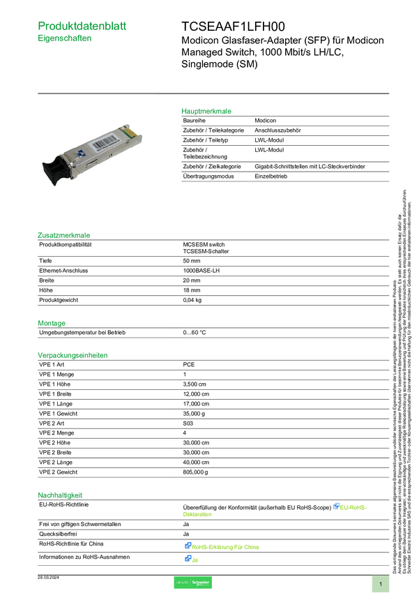 TCSEAAF1LFH00 Moduł rozszerzeń Schneider Electric TCSEAAF1LFH00