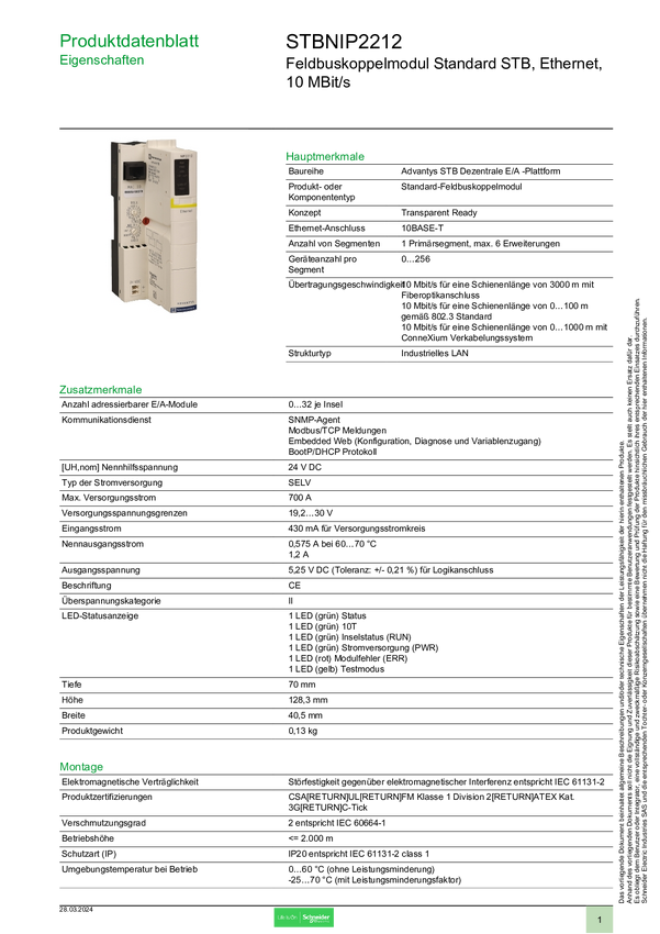 STBNIP2212 Moduł rozszerzeń Schneider Electric STBNIP2212
