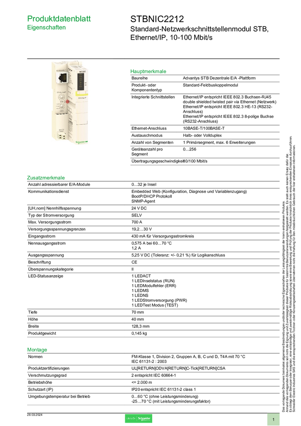 Moduł rozszerzeń Schneider Electric STBNIC2212