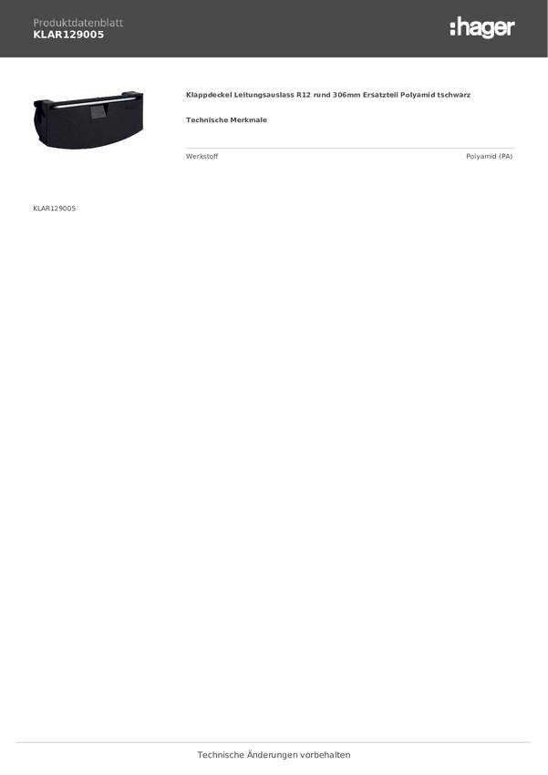 KLAR129005 Akcesorium do listw Tehalit Pokrywa na zawiasach czarny głęboki 1 szt.