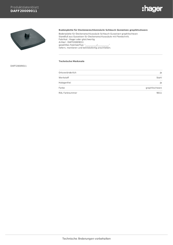 DAFF20009011 Akcesorium do listw Tehalit Płytka bazowa czarny 1 szt.